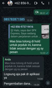 Hal ini dapat dibuktikan dengan tidak respon/tanggapnya pihak kurir jasa pengiriman/ekspedisi yang menampung uang penjualan produk dari seller/penjual penipu ini.